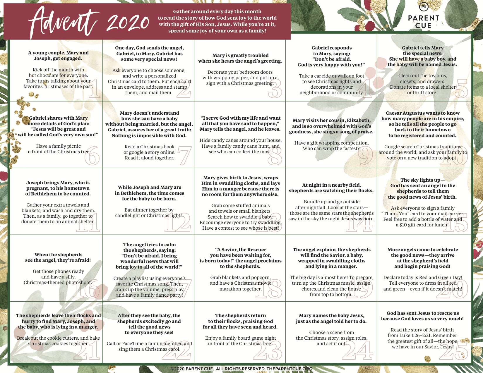 Join us as we kick off Advent 2020! Each day you will read a part of the Christmas story and enjoy a fun activity. Stay tuned for some surprises along the way in our Restoration Kids Facebook Group!